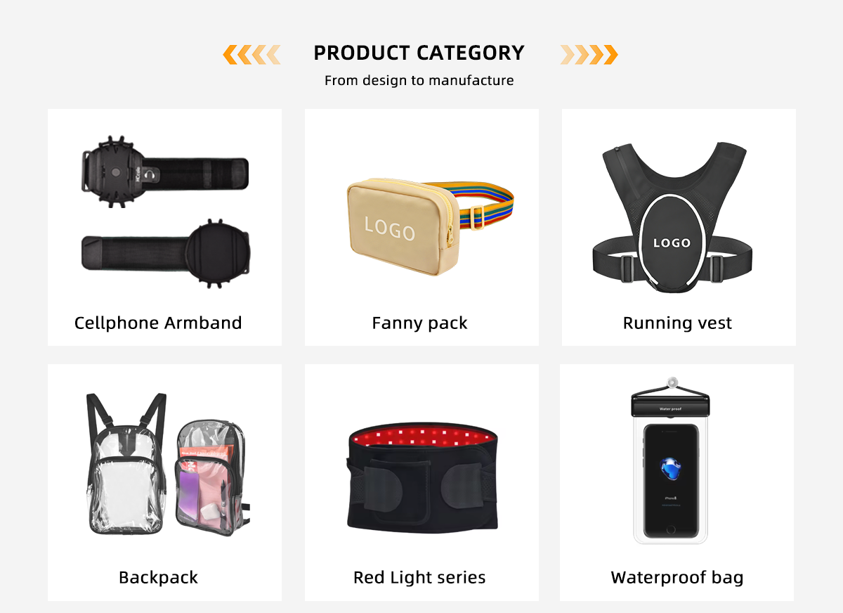Ana ürünler:Cep telefonu çantaları, sırt çantaları, yansıtıcı güvenlik kıyafeti, egzersiz bantları, bel çantaları